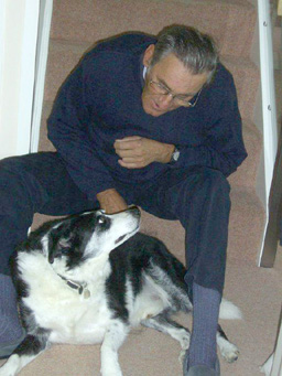 John's first marriage ended but later on he met Valerie and they were married for nearly 32 years. John decided Valerie would be a good partner when his Golden Labrador, Bonnie, accepted her. Since that time they've always had animals, many of them looking for a loving home when their owners could no longer look after them. The dogs which came in that way were Dillon, Flossie, Sadie, Scruffy and Winston. Flossie had puppies after a Collie came over the garden wall at Dunbeath and one of the pups, Candy, stayed with John and Valerie for the rest of her life. Winston died, aged 17, on December 30th, a month and a half after John. He is buried beneath the trees in the croft just east of the round pond near where Westacre Wood will grow. He loved to go into the croft and so his last resting place is there. Of course it was not just dogs. Tod the goat came too and lived at Thorneybush until he was 16.