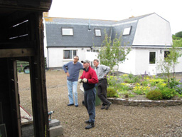 John, Gavin and Keith sizing up demolition of the original shed and greenhouse. John's plans for the new one should be turned into reality next summer.
