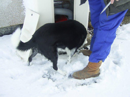 John and Winston walking in the snow