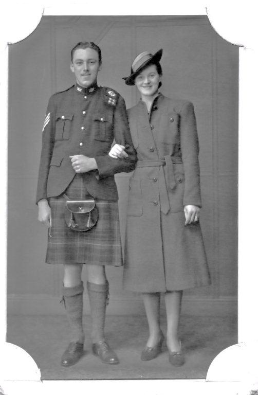 Janet Miller Sutherland and Norman Barker on their wedding day, 27th April 1942 at Bruan Manse, Caithness.