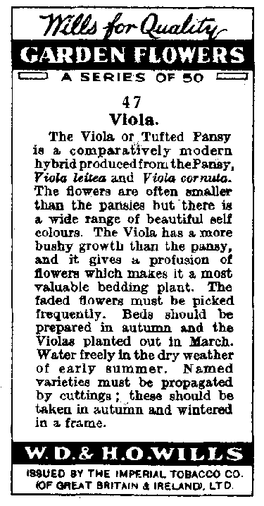 several series of cards concerning plants, and some of these included violets/pansies.